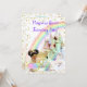 Une invitation magique pour une célébration magique ! Château d'arc-en-ciel avec le chariot et la licorne et naturellement la princesse assez petite dans son tutu et couronne d'arc-en-ciel.