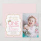 Modifier cette invitation de princesse rose et or mignonne 1er anniversaire avec vos propres détails et photo