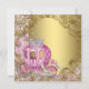 Fancy rose et or brillant princesse royale Quinceañera invitation avec belle calèche royale et jolie rose rose et argent parties scintillant scintille arrière - plan avec des tourbillons élégants. Cette élégante invitation à la princesse Quinceañera est facilement customisée pour votre événement en ajoutant simplement vos détails dans le style de police et de couleur, et le libellé de votre choix. Il s'agit d'un design imprimé avec pas de vrais bijoux, rubans, parties scintillant, etc.