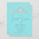 Chic princesse tiara couronne coeur en forme de parties scintillant argent scintillants et turquoise photo bleue Sweet 16 anniversaire fête, avec un script chic calligraphie. Ajoutez votre photo à l'arrière. Contactez-moi pour changer la police principale.