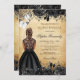 Vintage Princesse Elégante Papillons Floraux Noirs Quinceañera Quince Invitation