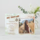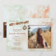 Invités Invitations au nouveau diplômé et leur prochaine aventure avec cet invitation avec 4 photos de la grade, contre un arrière - plan abstrait vert et rouille.