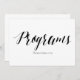 Style calligraphie noir et blanc simple et élégant "Programmes s'il vous plaît prendre un" signe mariage. Ce panneau mariage "Programmes s'il vous plaît prendre un" a l'air superbe imprimé sur un papier mat, si vous avez besoin de quelque chose de plus traditionnel utiliser le Laid, Lin ou Colonné, pour une sensation rustique utilise le Kraft Artistique, si vous voulez ajouter une touche de glamour, utilisez le Luxe. En cliquant sur le bouton "customiser", vous pouvez accéder à l'outil d'édition et choisir une couleur arrière - plan différente. Il s'agit d'un panneau de carte plat de 5" x 7", sera vraiment élégant dans un cadre d'image.