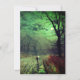 Carte mettant en vedette la peinture de John Atkinson Grimshaw, Une soirée au clair de lune (1880). Une lune fantomatique remplit le ciel nocturne de l'Angleterre victorienne tandis qu'une femme se tient dans une rue bordée d'arbres. Devant elle se trouve un bâtiment éclairé. Un excellent cadeau pour les fans du romantisme et de l'Angleterre victorienne.