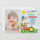 Ce design mignon et coloré présente l'illustration d'adorables animaux de ferme sur un tracteur. Vous pouvez facilement personnaliser le invitation avec vos détails. Pour une personnalisation plus avancée de ce design, il suffit de cliquer sur le bouton "Customiser plus loin". © Blue Bunny Studio