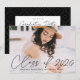 Invitez vos invités à célébrer la réussite de votre diplômé avec nos invitations de remise de diplôme photo élégantes. Le recto des invitations de fête de fin d'études affiche la photo du diplômé avec "Promotion 2023" dans une écriture calligraphique moderne noire en surimpression. Personnalisez le recto des invitations de fête de fin d'études modernes en ajoutant le nom du diplômé, le nom de l'école et l'année de remise des diplômes. L'invitation se retourne pour afficher les détails de votre fête de fin d'études et un motif géométrique à pois noir et blanc tendance. Le design est parfait pour les diplômés du lycée et de l'université.