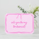 La petite carte parfaite à proposer à vos demoiselles d'honneur ! Il donne une ambiance intemporelle, fantaisiste, coquette et comporte un joli arc dessiné à la main. La couleur chaude rose girly lui donne une ambiance barbie.