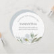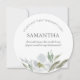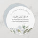 Elégante carte de proposition de femme d'honneur ou de femme de chambre d'aquarelle dans un format rond unique encadre vos détails avec une bordure de feuilles et de fleurs d'aquarelle gris dans des tons gris et cool pâles. La police est définie dans un élégant style traditionnel sans serif et type script. Parfait pour les mariages de printemps, d'été, d'automne, de campagne ou de jardin. Pour voir d'autres conceptions comme cette visite VG Invitations à www.zazzle.com/vginvites