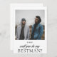 Nous vous présentons notre invitation de proposition de témoin de mariage photo à l'écriture minimaliste, une façon raffinée et sophistiquée d'inviter votre meilleur ami à se tenir à vos côtés le jour de votre mariage. Avec sa police d'écriture claire et son design minimaliste, cette invitation dégage une élégance et un style intemporels.