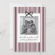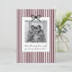 Vous cherchez un moyen doux et significatif de demander à vos proches d'être les parrain et marraine de votre bébé ? Ce modèle de carte est le moyen idéal pour poser la question ! Que vous demandiez à un membre de la famille ou à des amis proches, ce modèle vous aide à créer un moment sincère qu'ils garderont à jamais en mémoire. Ce design présente un fond rayé burgundy et un nœud noir, ainsi qu'un espace pour une photo de votre choix. Vous pouvez modifier la couleur des rayures, du nœud et de tout le texte de ce design.