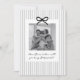 Vous cherchez un moyen doux et significatif de demander à vos proches d'être les parrain et marraine de votre bébé ? Ce modèle de carte est le moyen idéal pour poser la question ! Que vous demandiez à un membre de la famille ou à des amis proches, ce modèle vous aide à créer un moment sincère qu'ils garderont à jamais en mémoire. Ce design présente un fond rayé gris et un nœud noir, ainsi qu'un espace pour une photo de votre choix. Vous pouvez modifier la couleur des rayures, du nœud et de tout le texte de ce design.