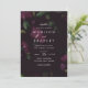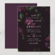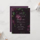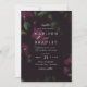 Cartes d'invitation de mariage floral élégant comportant les détails de votre mariage avec un fond sombre de fleurs aquarelles prune foncé et de feuilles vertes. L'invitation se retourne sur un fond uni de couleur prune foncé. Conçu pour se coordonner avec notre collection de mariage Dark Plum Floral.