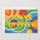 Super bébé ! Invitation avec un tourbillon psychédélique motif arc-en-ciel arrière - plan et texte jaune. Un design personnalisable jaune, orange, rouge, bleu, vert, rose, violet et blanc pour vous permettre de personnaliser avec votre propre texte, images et idées. D'un dessin original numériquement crayon de couleur rehaussé par Jess Perry.