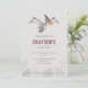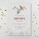 L'illustration de dessin animé amusante originale de Destei d'un dinosaure Pteranodon. La couleur de fond est gris clair et le bas comporte de jolies silhouettes de plantes modernes donnant au design un détail supplémentaire. Au milieu, il y a un espace pour le texte personnalisé. Le nom de la personne dont l'anniversaire est célébré est écrit en police de couleur rouge correspondant au rouge visible sur la tête du dinosaure.