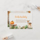 The invitation features a picturesque forest setting adorned with vibrant fall leaves in shades of orange, red, and gold, creating a warm and inviting backdrop. Nestled among the trees, you'll find an array of adorable woodland creatures—playful squirrels gathering acorns, curious hedgehogs exploring the underbrush, a gentle rabbit nibbling on leaves, and a graceful deer peeking through the foliage. Scattered among these charming animals are whimsical mushrooms, adding a touch of enchantment to the scene.