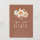 Spice, spice baby! Celebrate your little pumpkin with this cozy fall baby shower invitation in warm terracotta and soft cream. Featuring autumnal florals, cinnamon sticks, and pumpkin spice illustrations, this double-sided invitation is perfect for an autumn baby shower with seasonal charm. Easily customize the wording, date, and details to suit your event. Designed for a fall celebration filled with love, lattes, and little kicks.