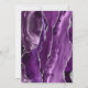 The left-hand edge of this elegant modern wedding anniversary party invitation features a purple watercolor agate border trimmed with silver faux glitter. The customizable text combines charcoal gray handwriting, copperplate and italic fonts on a white background. The reverse side features a matching purple and silver agate design.