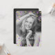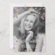 Célébrez le diplômé avec l'invitation chic, violet et or parties scintillant confetti photo obtention de diplôme. La belle et moderne invitation graduation dispose d'une parties scintillant violet et or, de la couverture de confetti, de l'espace réservé photo, et arrière - plan de tableau noir.