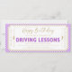 Invitation Purple Birthday Driving Lessons Gift Voucher Card