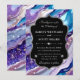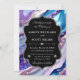 Celebrate in style with this stunning wedding design featuring swirling agate-inspired patterns in purple, blue, and white, accented by shimmering glitter textures. The ornate black frame and rich color palette evoke elegance, romance, and modern glamour. Perfect for wedding stationery that blends bold artistry with timeless sophistication, ideal for couples seeking a dramatic and luxurious aesthetic.