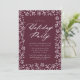 Invitation simple et élégante de fête de vacances avec une bordure de flocons blancs et branches de pin sur un arrière - plan mauve de baies. "Holiday Party" s'affiche dans un script de calligraphie blanc gras avec les détails de votre fête indiqués ci-dessous. L'invitation de fête des fêtes des fêtes des fêtes des fêtes des fêtes des fêtes des fêtes des fêtes des fêtes des fêtes des fêtes des fêtes des fêtes des fêtes des fêtes des fêtes des fêtes des fêtes des fêtes des fêtes des fêtes des fêtes des fêtes des fêtes des fêtes des fêtes des fêtes des fêtes des fêtes des fêtes des neiges se fait.