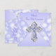 Invitation de la première communion lavande violette de fille avec élégante croix de diamant violet et argent sur un bel arrière - plan de bokeh violet pétillant. Vous pouvez facilement customiser cette jolie invitation à la première communion violette en ajoutant les détails de votre événement dans la taille et la couleur de police, et le libellé de votre choix. Vous pouvez également modifier la couleur de l'arrière - plan.
