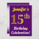 Invitation Purple, Faux Gold 15e anniversaire Célébration + N