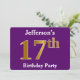 Invitation Purple, Faux Gold 17th Birthday Party; Nom personn