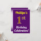 Ce design d’invitation à la fête d’anniversaire comporte un message comme "Fête du 1er anniversaire de Phillipe!", où le nom peut être personnalisé, et où le numéro "1er" a une apparence de faux or. Il est également décoré d'un arrière - plan violet. Les détails de l'événement sur le dos peuvent être personnalisés. Il pourrait être utilisé pour invitation des gens à la fête du premier anniversaire de quelqu’un ou à la fête d’anniversaire de quelqu’un. [~Z0000121]