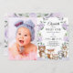 Cette très adorable invitation à l'anniversaire sur le thème des bois présente des animaux de la forêt douce et des fleurs mauves molles couronnes. Utilisez les outils de conception pour modifier le texte, modifier la couleur et le style de police pour créer un modèle unique d'invitation aimable.