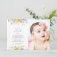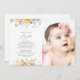 Invite friends and family in style and set the tone for your special day with this elegant baptism invitation. Design features purple and yellow watercolor flowers and greenery on white background.