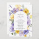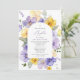 Invite friends and family in style and set the tone for your special day with this elegant baptism invitation. Design features purple and yellow watercolor flowers and greenery on white background.