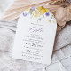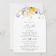 Invite friends and family in style and set the tone for your special day with this elegant baptism invitation. Design features purple and yellow watercolor flowers and greenery on white background.