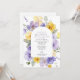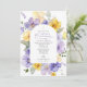 Invite friends and family in style and set the tone for your special day with this elegant first holy communion invitation. Design features purple and yellow watercolor flowers and greenery on white background.