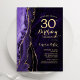 Invitation de fête de 30e anniversaire avec agate violet et or. Design élégant et moderne avec aquarelle agate marbre arrière - plan, fausse parties scintillant or et typographie script de police. Carte invitation branchée parfaite pour une célébration anniversaire féminine élégante. Invitations Zazzle imprimées ou téléchargement instantané modèle imprimable numérique.