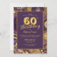 Elégant violet or gemstone agate 60e fête d'anniversaire Invitation. L'invitation du 60e anniversaire est décoré dans un style chic or et pierre de taille en marbre violet et les numéros 60 sont dans un style ballon en feuille d'or.