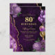 Elégant or violet Floral Agate 80e fête d'anniversaire Invitation. L'invitation de 80e anniversaire présente des ballons de parties scintillant violet et or et de délicats floraux de rose lilas violet avec des taches d'or.
