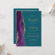Le bord gauche de cette élégante faire-part de mariage moderne est orné d'une bordure d'aquarelle violette ornée d'une parties scintillant en faux or. Le texte personnalisable combine écriture manuscrite dorée, cuivre et polices italiques sur un arrière - plan bleu turquoise. Ajoutez votre photo préférée à l'envers, ainsi qu'un texte supplémentaire et un code QR pour envoyer les invités à votre site mariage.