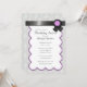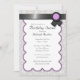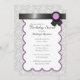 Belles invitations de fêtes avec un motif en cuir gris & blanc damassé et un design en ruban noir avec violet au sommet.