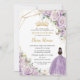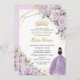 Invitation Purple Lilac Floral Princess Gold Quinceañera XV