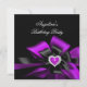 Invitation Purple Magenta Coeur Noir Bow fête d'anniversaire