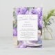 A graceful still life sets the tone for a refined bridal shower celebration: a porcelain teacup brimming with warm tea rests on a matching saucer, both adorned with delicate purple floral motifs that echo the lush bouquet of blooming lavender purple peonies nearby. The soft interplay of green leaves and violet petals creates a romantic, garden-inspired ambiance. An elegantly framed invitation card peeks into view, bordered with coordinating blossoms, inviting guests to gather in honor of love and new beginnings. The overall composition evokes charm, warmth, and timeless femininity—perfect for a tea-themed bridal shower steeped in beauty and sentiment. The back of the card is a full version of the beautiful floral illustration. Personalize with your own information.