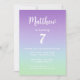 Invitation à la fête d'anniversaire des garçons arc-en-ciel violet pour une écriture de script moderne.
