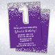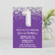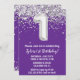 Purple et argent 1er anniversaire invitation à la fête 1 anniversaire invitation à la fête avec parties scintillant et écriture de script moderne et ballons de papier amusant.