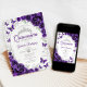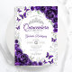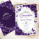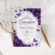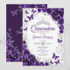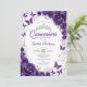 Purple silver and white Quinceanera celebration invitation. Features script font, silver butterflies, watercolor roses and tiara. Perfect for an elegant princess style glam celebration. Personalize with your own details. Printed Zazzle invitations or instant download digital printable template.