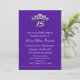 Jolie invitation à l'anniversaire de Quinceanera, couleur violet et argent. Une jolie tiara brillante argentée orne le sommet de cette invitation violette. Le texte graphique du numéro 15 dans un look argenté, est assis sous la couronne et une fine ligne argentée accentue le fond de l'invitation. Personnalisez le texte, pour la célébration du 15e anniversaire de vos filles.