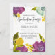 Invitation de graduation romantique avec fleurs d'aquarelle jaune, violet et menthe. Cette invitation est disponible pour d'autres événements - des événements de printemps parfaits.