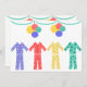 Conception mignonne superbe parfaite pour célébrer avec un sommeil au-dessus de partie de pyjama ! Caractéristiques de conception quatre paires de pyjamas dans une rangée. Les pyjamas sont aux nuances du vert rose, pourpre, jaune et en bon état. Chacun avec lui est propre motif tel que les flocons de neige, le pois, les étoiles et les lunes et les fleurs. Les pyjamas sont alignés dans une rangée, douille pour gainer. Au-dessus de la rangée des pyjamas mignons sont les flammes vertes en bon état et les décorations de lampion dans les mêmes couleurs que les pyjamas. Le verso de l'invitation a les mêmes flammes et décoration de lanternes à travers le dessus et texte entièrement personnalisable dans la police verte en bon état. La partie du sleepover de votre enfant sera un coup avec ces pyjamas mignons superbes dans des invitations d'une partie de pyjama de rangée !