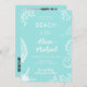 Aqua sea glass bleu et blanc moderne décontracté plage de plage invitation mariage avec étoiles de mer et coraux de l'océan et un élégant script de calligraphie manuscrit chic. Personnalisez-le avec votre texte, votre photo et votre code qr de numérisation.