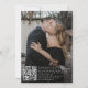 Elégant simple superposition noire minimale tout en un modèle faire-part de mariage avec un élégant script de calligraphie chic élégant et votre code QR de numérisation automatiquement généré à RSVP en ligne. ++++++++++++++++ Facile à personnaliser avec vos détails, photo et code de numérisation ! L'invitation convient aux mariages modernes et formels.